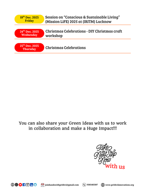 We impart Green Education, Skill-Building, Consultancy, Training, Eco-services to promote Low Carbon, Minimalist, Zero-Waste lifestyle, Zero-Waste Celebrations based on our core principles of 12 'R's of Insight, Action & Transformation