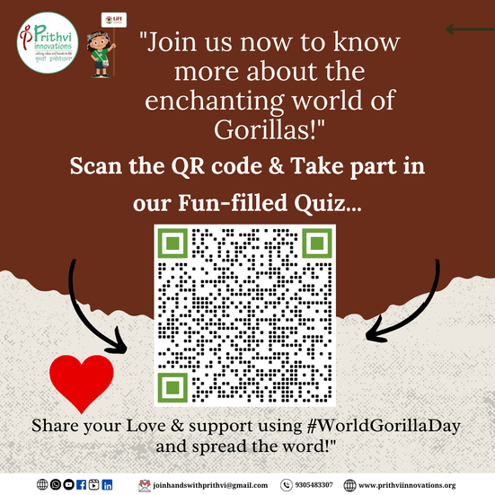 Prithvi Innovations is organizing an engaging Online Quiz to celebrate World Gorilla Day. This quiz aims to raise awareness about the significance of gorillas in maintaining the ecological balance and the urgent need for their conservation. Participants will have the opportunity to test their knowledge on gorilla species, their habitats, behaviors, and the threats they face due to habitat loss and poaching. Join us in this educational initiative to honor these gentle giants and contribute to global conservation efforts. Exciting prizes await top participants!